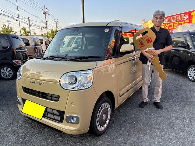 宇部市のT様 この度はムーヴキャンバスをご納車させていただき誠にありがとうございました。人気の高いムーヴキャンバス!!T様にお選びいただいたのは、モノトーンカラーのセオリー!落ち着いた色合いのベージュメタリックです♪飽きのこないお色ですので、長く快適なドライブを楽しんでいただきたいと思います(*^▽^*)